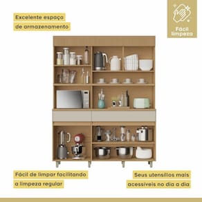 Compacta, funcional e elegante, a Cozinha Nobreza é ideal para espaços pequenos. Com 5 portas, 2 gavetas e prateleiras bem distribuídas, oferece ótimo armazenamento em um design moderno. Estrutura 100% MDF com acabamento semi-brilho e pés reguláveis. Perfeita para praticidade no dia a dia!