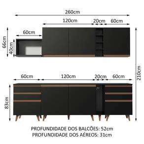 - 52 Cm de profundidade nos balcões e na torre e 31 cm nos aéreos