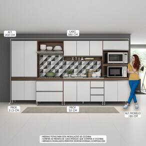 Cozinha Sabrina 360x202cm 6p C/ Pia Mdp Branco Menu Móveis Branco A Cozinha Sabrina Modulada foi desenvolvida para atender todas as suas necessidades do dia a dia com um design moderno, funcionalidade e versatilidade. A Cozinha Modulada e a tendencia do momento e foi arquitetada com modulos uteis que vao facilitar a sua rotina diaria, preparos dos alimentos e armazenamento dos utensilios e mantimentos, mantendo sua cozinha sempre organizada. Por se tratar de armarios de cozinha modulados voce pode ajustar os modulos conforme o espaco disponivel e montar diversas modulacoes diferentes para deixar o ambiente muito mais aconchegante. A elegancia fica por conta dos puxadores em perfil e os pes na cor prata dando um toque unico de sofisticacao. A Cozinha Sabrina e produzida com materiais de excelente qualidade, garantindo a durabilidade e vida util. O melhor em moveis no design atual aliando conforto, qualidade e otimos precos, so na Menu Moveis! Caracteristicas: Produzida em MDP de 15 mm Acabamento UV na cor Branco e Avela Portas com Dobradica Metalica Porta Basculante com Pistao a Gas Gavetas com Corredica Telescopica Puxadores Perfil em ABS na cor Prata Pes com Regulagem em ABS na cor Prata Balcao para Cooktop possui Tampo com Ranhura que pode ser utilizado com cooktop de 5 bocas, caso nao cortar pode utilizar normalmente. NAO acompanha TAMPO e PIA