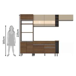 - Dimensão do produto (AxL): 225 x 290cm | Profundidade balcões e paneleiro 52cm e aéreos 31cm