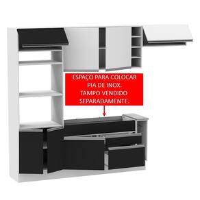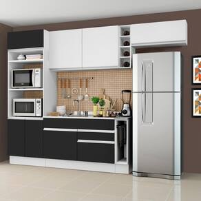 - Itens inclusos: 1 torre quente com dois nichos para forno e micro-ondas | 1 nicho menor e três portas sendo uma basculante | 1 balcão de pia com duas gavetas e uma porta, não acompanha tampo | 1 balcão porta panos com tampo Mood | 1 armário aéreo com duas portas com detalhe em vidro reflex | 1 mini adega | 1 armário aéreo com uma porta basculante