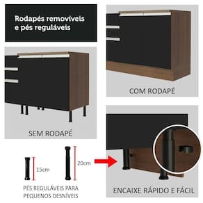 - Profundidade: Balcões e paneleiro 52cm | Aéreos 31cm