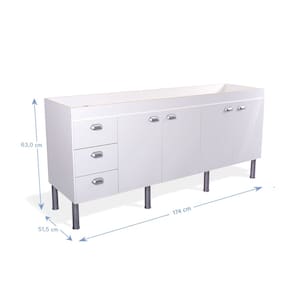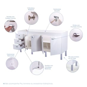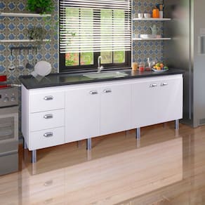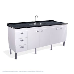 Informações adicionais: – Fita Borda em PVC; – Pés e Puxador em ABS; – Corrediça metálica 400mm; – Dobradiça curva sem pistão; – Laterais de gaveta revestidas em pet; – Produto vai desmontado.