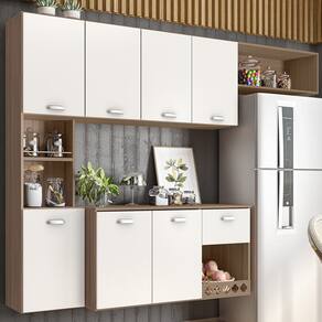 MDPA Cozinha Suspensa 7 portas 1 gaveta com balcão é ideal para ambientes compactos. Modelo suspenso composto por paneleiro com nichos decorativos com seguintes medidas Nicho Superior do Paneleiro: A.18 x L.28 x P.12cm acompanha detalhe da barra em polímero para dar mais segurança a objetos de vidro, Nicho Inferior Paneleiro A.22 x L.28 x P.12cm Nicho aberto: A.19 x L.58 x P.20cm que pode ser utilizado sobre fogão ou geladeira para aproveitamento de espaço, Nicho do balcão A.26 x L.30 x P.35cm com aplique usinado a laser decorativo para acomodar frutas e legumes. Armário aéreo com 04 portas de bater, balcão com tampo 15mm 2 portas 1 gaveta. Possui puxadores concha retrô em polímero, dobradiças reforçadas de 26mm e corrediças telescópicas 350mm permitindo abertura total. Estrutura em MDP 15m pintura UV. Ideal para quem busca aliar estética e praticidade, transformando a cozinha em um espaço agradável e eficiente. Este móvel chegará em sua casa separado em 1 volume.