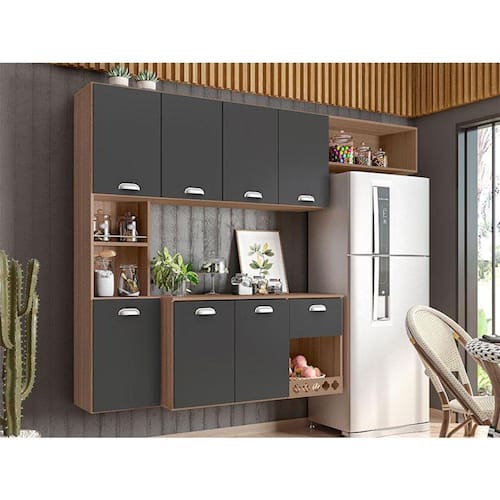Cozinha Suspensa Ambiente Mila Carvalho Grafite – Poliman