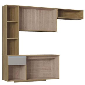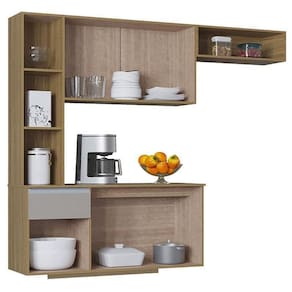 Cozinha Suspensa com Balcão Mel 163 cm Damasco Ripado Off White Poquema