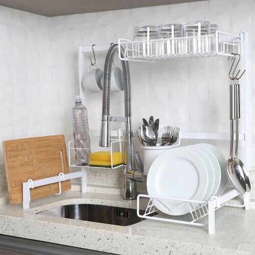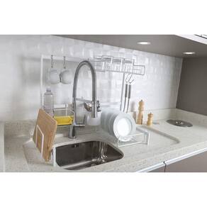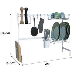 Cozinha suspensa modular autossustentável 63cm branco 14 peças dicarlo Cozinha suspensa auto-sustentável modular - lançamento - 14 peças não necessita de furos na parede Ter uma cozinha bem organizada e limpa é o sonho de todos, e pra isso nossos utensílios lhe ajudarão demais. O kit de utensílios cozinha modular auto sustentável da dicarlo foi um produto pensado para deixar a sua cozinha mais organizada e sofisticada. Possui um compacto escorredor de louças que otimiza muito o espaço em sua cozinha. O visual é moderno, aumenta sua organização, além de ser feito 100% em aço reforçado e com pintura epóxi com tratamento antiferrugem. Você vai adorar e sua cozinha vai ficar linda fácil de instalar e montar; sem precisar furar a parede fabricado 100% em aço. Ideal para facilitar sua organização na bancada da cozinha. Não necessita furar, fácil de montar. Auto-sustentação, com auxílio de pés para pôr na bancada da pia. Extensor de altura, 8,5cm Suporta até 20kg. Pintura epóxi. Medidas dimensões: 63 cm (comprimento) - 33,6 cm (largura) - 53,5 cm (altura) Conteúdo: Kit cozinha modular 04 ganchos 01 quadro sustentável 02 extensores de altura 02 pés de sustentação 01 porta detergente 01 cesto suspenso 01 porta talheres 01 porta pratos 01 porta tábua Ficha técnica Marca: dicarlo Material: 100% aço Cor/acabamento: branco