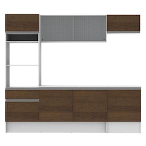 - 1 torre com nichos para forno e micro-ondas, com 1 gaveta e 2 portas, sendo 1 basculante com 1 balcão de pia agregado de 120 cm com 2 portas