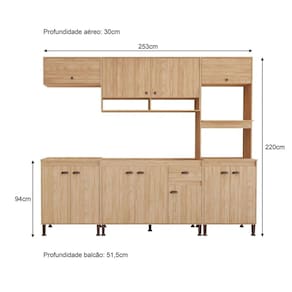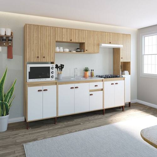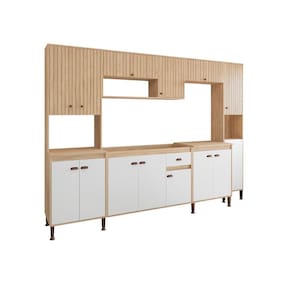 Com um design moderno e sofisticado, a Cozinha Modulada Torino é perfeita para quem busca praticidade e estilo na hora de preparar suas refeições. Seus módulos inteligentemente projetados oferecem uma organização impecável, permitindo que você aproveite ao máximo cada centímetro do seu ambiente. Acabamento da Prateleira: Pintura Escala de Brilho da Prateleira: Fosco Acabamento da Gaveta: Pintura Acabamento da Porta: Pintura Escala de Brilho da Porta: Fosco Acompanha Tampo: Não Altura dos Pés: 17 cm Ambiente Principal: Cozinha Complexidade da Montagem: Média: pode ser montado por mais de uma pessoa e/ou necessite de maior conhecimento para montagem Cor: MEL / OFF WHITE Cor do Produto: Mel / Off White Cor Interna: Mel Escala de Brilho: Fosco Espessura do Material da Estrutura: 15 mm Gaveta com Chave: Não Itens Inclusos: 1 PANELEIRO 4 PORTAS, 1 ARMÁRIO 120 CM, 1 ARMÁRIO DE GELADEIRA 70 CM , 1 PANELEIRO 2 PORTA , 1 BALCÃO 70 CM, 1 BALCÃO DE PIA 120 CM Manual de Montagem e Instalação: https://product-hub-prd.madeiramadeira.com.br/909456/documents/f5ac8150-f1ff-4bbf-8a77-b1e711d31eff197198439521716233535309.pdf Material da Dobradiça/Corrediça da Porta: Metálica Material da Gaveta: MDP Material da Porta: MDP Material da Prateleira: MDP Material dos Pés: ABS Medida de cada item (A x L x P): 63X220X51,5 , 120X58X30, 70X32X30, 40X220X30, 70X94X51,5, 120X94X51,5 modular: Sim Necessita Montagem: Sim O Balcão Acompanha Pia: Não Origem do Produto: Nacional Pés Reguláveis: Sim Peso: 146,37 kg Peso Máximo por Gaveta: 3 kg Peso Máximo por Prateleira: 7 kg Possui Pés: 17 Possui Portas: Sim Possui Prateleiras: Sim Possui recorte para Cooktop: Não Possui Rodízio: Não Recomendações de Uso, Manutenção e Limpeza: Antes de limpar recomenda-se que seja retirada toda a poeira com um espanador ou flanela seca para evitar riscos na superfície, após utilize um pano umido em água, macio e limpo. Sapatas Niveladoras: Sim Sistema de Montagem: PARAFUSO, CAVILHA Suporta Até (kg): 145 kg Tamanho Indicado da Pia: 120 CM Tamanho Indicado do Tampo: 120 CM Tipo de Corrediça da Gaveta: Telescópica Tipo de Dobradiça da Porta: Simples Tipo de Puxador da Gaveta: Externo Tipo de Puxador da Porta: Externo
