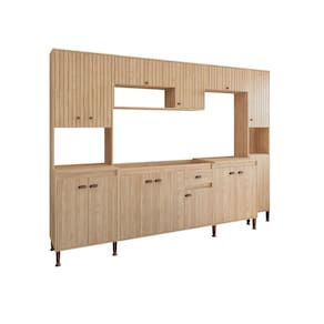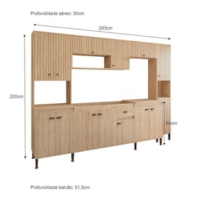 Com um design moderno e sofisticado, a Cozinha Modulada Torino é perfeita para quem busca praticidade e estilo na hora de preparar suas refeições. Seus módulos inteligentemente projetados oferecem uma organização impecável, permitindo que você aproveite ao máximo cada centímetro do seu ambiente. Acabamento da Prateleira: Pintura Escala de Brilho da Prateleira: Fosco Acabamento da Gaveta: Pintura Acabamento da Porta: Pintura Escala de Brilho da Porta: Fosco Acompanha Tampo: Não Altura dos Pés: 17 cm Ambiente Principal: Cozinha Complexidade da Montagem: Média: pode ser montado por mais de uma pessoa e/ou necessite de maior conhecimento para montagem Cor: Mel Cor do Produto: Mel Cor Interna: Mel Escala de Brilho: Fosco Espessura do Material da Estrutura: 15 mm Gaveta com Chave: Não Itens Inclusos: 1 PANELEIRO 4 PORTAS, 1 ARMÁRIO 120 CM, 1 ARMÁRIO DE GELADEIRA 70 CM , 1 PANELEIRO 2 PORTA , 1 BALCÃO 70 CM, 1 BALCÃO DE PIA 120 CM Manual de Montagem e Instalação: https://product-hub-prd.madeiramadeira.com.br/909459/documents/fbd84171-4ac3-45a9-86f8-3930af21c1ba197198439521716233535309.pdf Material da Dobradiça/Corrediça da Porta: Metálica Material da Gaveta: MDP Material da Porta: MDP Material da Prateleira: MDP Material dos Pés: ABS Medida de cada item (A x L x P): 63X220X51,5 , 120X58X30, 70X32X30, 40X220X30, 70X94X51,5, 120X94X51,5 modular: Sim Necessita Montagem: Sim O Balcão Acompanha Pia: Não Origem do Produto: Nacional Pés Reguláveis: Sim Peso: 146,37 kg Peso Máximo por Gaveta: 3 kg Peso Máximo por Prateleira: 7 kg Possui Pés: 17 Possui Portas: Sim Possui Prateleiras: Sim Possui recorte para Cooktop: Não Possui Rodízio: Não Recomendações de Uso, Manutenção e Limpeza: Antes de limpar recomenda-se que seja retirada toda a poeira com um espanador ou flanela seca para evitar riscos na superfície, após utilize um pano umido em água, macio e limpo. Sapatas Niveladoras: Sim Sistema de Montagem: PARAFUSO, CAVILHA Suporta Até (kg): 145 kg Tamanho Indicado da Pia: 120 CM Tamanho Indicado do Tampo: 120 CM Tipo de Corrediça da Gaveta: Telescópica Tipo de Dobradiça da Porta: Simples Tipo de Puxador da Gaveta: Externo Tipo de Puxador da Porta: Externo