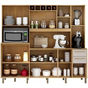 Equipada com balcão que para facilitar a preparação daquele prato gostoso ou apoiar utensílios, tem armário aéreo para as louças e mantimentos e espaço para micro-ondas, acomodando tudo o que você pode precisar nas prateleiras internas.