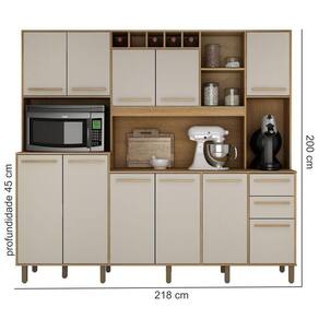 Estrutura: MDPAcabamento: FoscoPortas: 11 Portas, com dobradiças de metálicasGavetas: 02 gavetas, com corrediças TelescópicaPuxador: Sim, em MDF envelopado na cor do produto Pés: Em EPS reguláveisEspaços: Tampo Central: Largura 106 cm x profundidade 49 cm - Nicho Lateral: (Largura 35 x altura 57 x profundidade 45) cm - Nicho micro-ondas: (largura 70x altura 43x profundidade 45) cmLargura: 218,0 cmAltura: 200,0 cmProfundidade: 45,0 cmPeso: 110,25 KgGarantia: 03 mesesInformações Sobre Montagem: Não possuímos serviço de montagem.