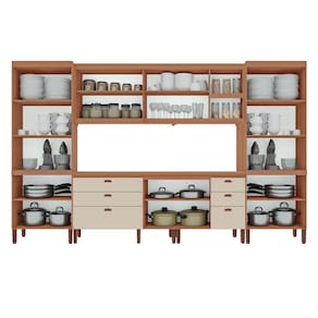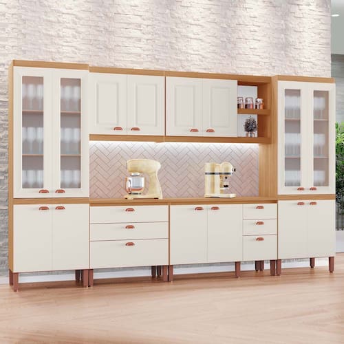 A Cozinha Modulada Vitória 100%MDF Tuboarte. Composta por 06 módulos é a escolha ideal para quem busca qualidade, funcionalidade e design moderno. se destaca pelo amplo espaço interno, excelente organização e acabamento elegante, Ideal para quem precisa de mais armazenamento sem abrir mão do design.O conjunto é composto por armários aéreos e balcões, proporcionando organização eficiente para utensílios, mantimentos e eletros, além de valorizar o ambiente da sua cozinha.