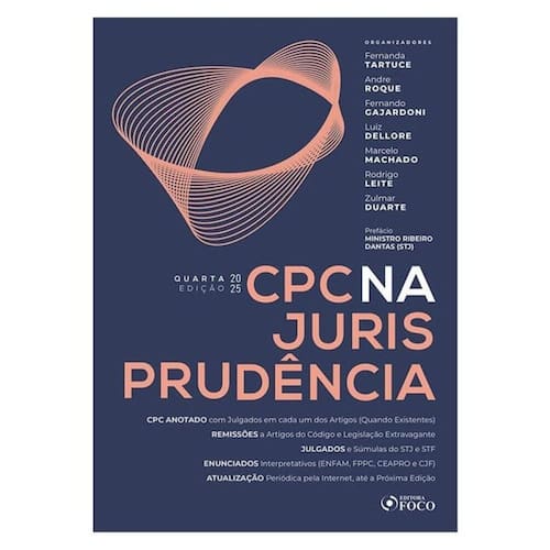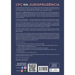 >Sobre a obra CPC na Jurisprudência - 4ª Ed - 2025 Destaques - CPC anotado com julgados em cada um dos artigos (quando existentes); - remissões a artigos do Código e legislação extravagante; - julgados e súmulas do STJ e STF; - enunciados interpretativos (ENFAM, FPPC, CEAPRO e CJF) - atualização periódica pela internet, até a próxima edição Sobre a obra Em vigor desde março de 2016, a Lei 13.105/2015 trouxe para o Brasil um novo Código de Processo Civil, que já passou por diversas alterações legislativas. Passados 7 anos da vigência da nova lei, já é possível apresentarmos interpretação que os Tribunais estão conferindo ao Código. Nesse sentido, a Editora Foco apresenta esta obra, fundamental para a efetiva compreensão da legislação e, também, para aqueles que atuam no foro: trazendo o que já há de jurisprudência a respeito da nova legislação, primordialmente a partir dos Tribunais Superiores (STJ e STF) mas, também, de tribunais intermediários (TJs e TRFs) – além de, em alguns casos, julgados decorrentes da Justiça do Trabalho. O objetivo dos organizadores – que atuam diariamente no contencioso do processo civil, cada qual em sua respectiva atividade – é apresentar ao leitor como os Tribunais estão interpretando o Código. Assim, em cada artigo, parágrafo ou inciso, haverá a reprodução de um julgado – isso quando já existir alguma decisão a respeito do tema (sendo certo que há vários dispositivos a respeito dos quais ainda inexistem decisões). E esse julgado será precedido de uma breve explicação a respeito do que foi decidido, para facilitar ainda mais a compreensão do dispositivo em análise. Além disso, quando pertinente, cada artigo será acompanhado por remissão a (i) outros dispositivos do próprio CPC, (ii) outros dispositivos de legislação extravagante, (iii) súmulas (STF e STJ) e (iv) enunciados. No que se refere aos enunciados, a obra traz as conclusões da ENFAM (Escola Nacional de Formação e Aperfeiçoamento de Magistrados), FPPC (Fórum Permanente de Processualistas Civis), CEAPRO (Centro de Estudos Avançados de Processo) e CJF (Conselho da Justiça Federal), sendo conveniente destacar que todos esses encontros contaram com a participação de um ou mais dos organizadores desta obra. Em síntese, este é um trabalho elaborado por quem está participando ativamente dos debates e da construção da jurisprudência do CPC. Assim, esta obra traz: a) índice sistemático do CPC e exposição de motivos do Código; b) redação integral e atualizada do CPC, com remissões a artigos do Código, legislação extravagante, súmulas e enunciados doutrinários; c) quando existentes, julgados em cada um dos dispositivos do Código; d) súmulas selecionadas do STF e STJ, além de Enunciados da ENFAM, FPPC, CEAPRO e CJF; e) razões de veto; f) leis que alteraram o CPC e índice remissivo. O leitor encontrará, portanto, um material completo para estudar o sistema processual e para sua atuação profissional com base no CPC. Enfim, o CPC na jurisprudência. Boa leitura e bons estudos!