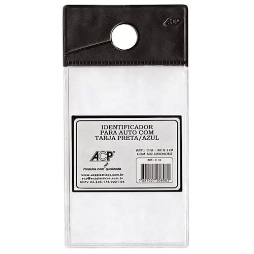 Crachá 9Cmx14Cm Vertical Para Auto Acp C-10 Preto Com 100 UnidadesCrachá 9cmx14cm Vertical para Auto ACP C-10 Preto com 100 UnidadesCrachá para identificação de veículos, estacionamentos, concessionárias, condomínios e outros. Possui abertura horizontal. Tamanho 9x14cm. Com 100 unidades.Marca: Acp
