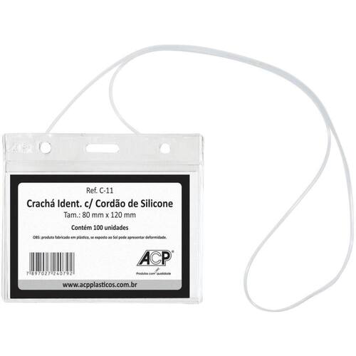 Crachá com cordão na cor Cristal (seu cordão é de silicone).
