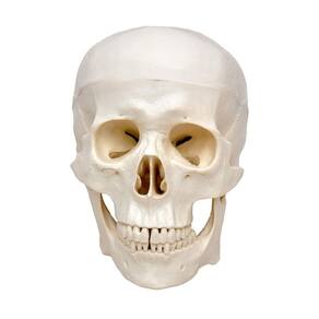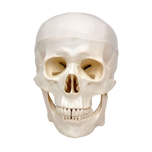 Com O Modelo Anatômico Do Esqueleto Craniano É Possível Visualizar As Seguintes Estruturas Entre Outras: Osso: Frontal, Parietal, Nasal, Occipital, Zigomático, Maxilar, Palatino, Temporal, Esfenóide, Etimóide, Vômer, Mandíbula, Maxila, Suturas: Serreadas, Escamosas E Planas. Modelo Divisível Em 3 Partes.