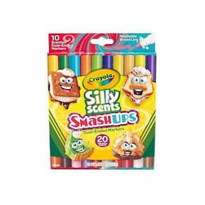 Crayola canetinhas perfumadas laváveis smashups ponta dupla Marcadores de arte crayola silly scents: 10 canetinhas com ponta dupla perfumadas com aroma doce smash ups total de 20 cores. Aromas doces: guloseimas com cheiro doce, como mint chocolate chip, orange dreamsicle, macaron e red velvet cake. Marcadores laváveis: esses marcadores de linha larga são laváveis da pele e da maioria das roupas laváveis Marca: Não Informado
