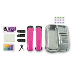 Contém: 1 bandeja de Trabalho, prancha de pintar cabelo, gizes coloridos, esponja de borracha macia substituíveis, miçangas para cabelo, autocolante crazy chic, manual ilustrado.