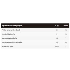 Sua sugestão seria de 1 dosador (7,1g) misturado com 200ml de água ou sua bebida de preferência, assim irá obter todos os benefícios da creatina.
