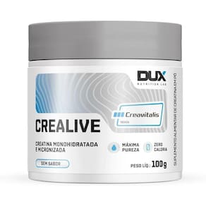 Apresentamos a CREALIVE da DUX Nutrition Lab, um suplemento alimentar de creatina em pó desenvolvido para quem busca alta performance e resultados. Um suplemento de última geração, feito exclusivamente com Creavitalis, matéria-prima alemã de máxima qualidade derivada da renomada Creatina Creapure. Sua micronização, processo de redução das partículas de creatina, oferece uma biodisponibilidade excepcional, máxima pureza e solubilidade.