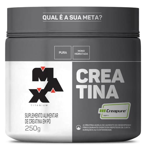 Principais benefícios da Creatina Creapure Max Titanium: Aumento de força: permitindo você levantar mais carga.Hipertrofia: crescimento de massa muscular.Resistência elevada: aumenta a capacidade de resistência, ou seja, você consegue fazer mais repetições nas séries de treinos.Recuperação rápida: auxilia na recuperação muscular após o treino.Hidratação celular: A creatina auxilia na hidratação celular, resultando em uma musculatura mais cheia.Auxilio na saúde cerebral Sugestão de uso da Creatina Creapure Max Titanium:Consumir 1 scoop que são 3 gramas, em 200 ml de água ou conforme a recomendação do nutricionista, ou médico.