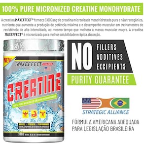 Creatina maxeffect oferece todos os beneficios desse aminoácido para seus músculos terem maiores condições de evolução, armazenando estoques de energia atp para celulas musculares hidratadas e melhor rendimento, contendo fonte monohidratada micronizada pura. A Creatina Micronizada é uma variante da creatina monohidratada obtida através da micronização, um procedimento que quebra a creatina em partículas muito finas, melhorando a solubilidade em líquidos e a absorção pelo corpo. Sugestões de Uso 3g 1/2 scoop ao dia em bebida de sua preferencia ou conforme orientação . Marca: Não Informado