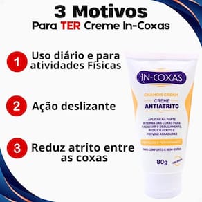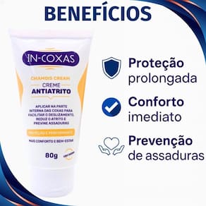 Com o Creme Antiatrito In-Coxas, você pode desfrutar de uma pele mais suave e protegida, prevenindo o desconforto causado pelo atrito constante. Sua aplicação é simples e seu efeito duradouro, tornando-o um item essencial para o seu cuidado pessoal.