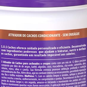 Com os cabelos limpos e úmidos, aplique o Salon Line Ativador de Cachos S.O.S Nutritivo mecha a mecha, uniformemente no comprimento e pontas. Se desejar mais controle do volume, aplique também próximo a raiz. Desembarace os fios com um pente de dentes largos e, em seguida, amasse-os iniciando o movimento das pontas até a raiz. Repita o movimento de amassar e soltar quantas vezes for necessário, vai auxiliar na formação dos cachos. A quantidade ideal a ser aplicada dependerá da quantidade de cabelo e do comprimento dos fios.