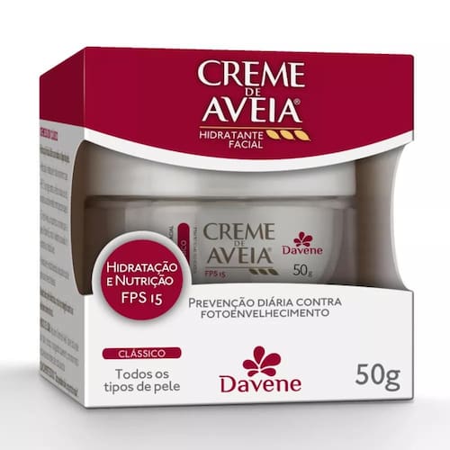Esse creme pode ser utilizado em todos os tipos de pele, pois não deixa o rosto oleoso e gorduroso. Sua textura leve permite uma fácil aplicação e absorção adequada ao tipo de pele das mulheres brasileiras. Ao utilizar o Creme Aveia Davene Clássico, você estará garantindo a renovação das células e prevenindo o aparecimento de rugas causadas por agressões externas do dia a dia.