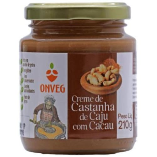 Creme Castanha De Caju Com Cacau Onveg 210G Rico em proteína, minerais e ômega 3 o creme de castanha de caju na versão cacau tem todos os benefícios antioxidantes e o sabor do cacau. Sem o uso de óleos refinados e teor de açúcar reduzido Produto artesanal feito lentamente em moinho de pedra em baixa temperatura, o que garante ao alimento sua integridade nutricional, além de uma textura lisa e cremosa. Fonte de gorduras do bem. Feito em moinho de pedra Vegano Sem Glúten Fonte de Ferro Contém Antioxidantes Sem Conservantes Ingredientes: Castanha de caju natural, cacau em pó orgânico, açúcar mascavo orgânico e essência natural de baunilha. Não contém Glúten Alérgicos: contém Castanha de Caju. Pode conter traços de amendoim. Peso 210g Marca: Não Informado Ean: 0634438681380