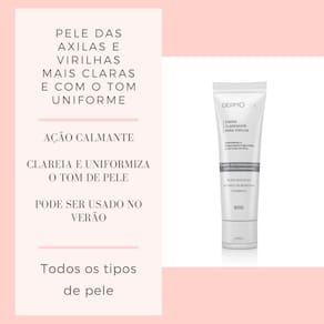 Creme Clareador Intimo para Virilha Dermosex é para uso unissex. Creme para aplicação corporal que clareia e uniformiza o tom da pele, principalmente na área das virilha. De acordo com a ANVISA, os dermocosméticos são produtos que em sua composição possui substâncias e ativos terapêuticos que além da epiderme, atingem as camadas mais profundas da pele, garantindo um melhor resultado, como no tratamento anti-idade, manchas na pele e cicatrizes. Ou seja, promove alterações fisiológicas e melhoram a aparência da pele. Os cosméticos tradicionais funcionam com ação instantânea, mas não atuam nas reais causas destes problemas, os dermocosméticos passam por testes E pesquisas científicas garantindo a segurança e eficácia. Pensando nisso, e na crescente busca de produtos para skincare, a A Sós não poderia deixar de te apoiar no cuidado e tratamento da pele da sua região íntima. Após muitos testes, chegamos à linha DermoSex, revolucionário conceito de cuidados íntimos. Principais benefícios: Ação Clareia e uniformiza o tom de pele Pode ser Utilizado no verão Ativos do produto: Bioex Whiteplex Associação de extratos botânicos concentrados em ativos com ação sobre a hiperpigmentação cutânea. Diminui a melanogênese. Extrato de Biofoetida O extrato vegetal Biofoetida Extract com ação inibidora na formação de manchas na pele. Este extrato atua na redução da atividade da enzima tirosinase, auxiliando na redução de tirosina em dopa e dopaquinona, passo inicial para a produção de melanina. Assim com a redução da melanogenese ocorre a uniformização da tonalidade da pele. Vitamina E Conhecida por ser um potente antioxidante, responsável por eliminar os radicais livres - agentes que promovem o envelhecimento da pele - a vitamina E também é capaz de estimular a produção de colágeno, fundamental para manter a firmeza e viçosidade da cútis. REGISTRO ANVISA: AFE 2.03.200-7 N Processo 25351.036147/2020-31 Previne rugas. Melhora a cicatrização. Aumenta a firmeza da pele, já que participa da formação do colágeno. Age como lubrificante e hidratante potente para a pele. Para quais tipos de pele: Todos os tipos de pele Resultado: Pele das axilas e virilhas mais claras e com o tom uniforme Principais Tags de Pesquisa: Clareador intimo, creme clareador intimo,clareador de partes intimas, clareamento íntimo preço, clareador partes intimas, clareamento região íntima, creme clareador partes intimas, clareador para partes intimas, creme clareador de partes intimas, tratamento para clarear partes intimas, clareador virilha, clarear virilha, clareador de virilha, creme para clarear virilha, creme para clarear virilha, creme clareador de virilha
