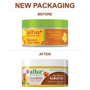- Um frasco de 6,5 onças de creme corporal havaiano de hidratação profunda de noz Kukui da Alba Botanica - A noz Kukui