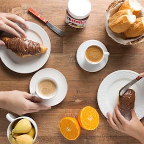 Comece o dia com Nutella Nutella está nas mesas de café da manhã de milhões de pessoas ao redor do mundo há mais de 50 anos, espalhando bons momentos para começar o dia. Uma fatia de pão com Nutella tem um gosto delicioso. Graças à nossa receita única e incomparável, Nutella tornou-se o mais popular e icônico creme de avelã do mundo.
