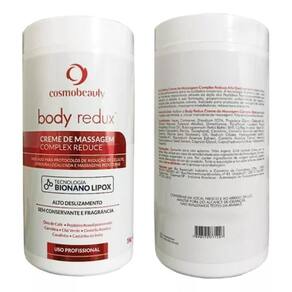 Creme de Massagem Complex Reduce Cosmobeauty 1kg desenvolvido para uso corporal em massagens. Textura cremosa que facilita o deslizamento durante a aplicação. Indicado para todos os tipos de pele. Pode ser utilizado em ambientes profissionais ou domiciliares.
