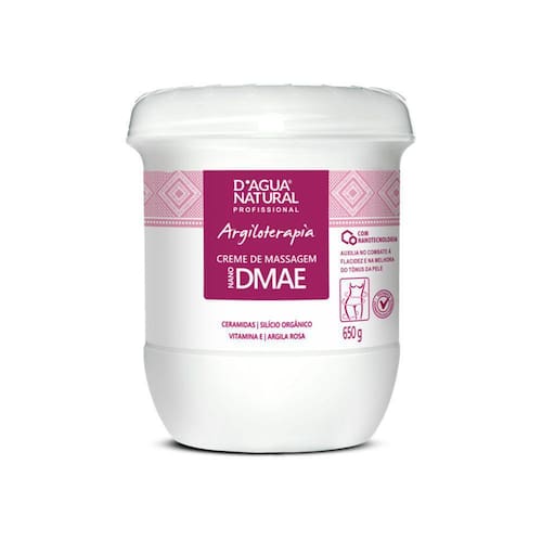 Desenvolvido para auxiliar na prevenção e combate à flacidez, ou creme nano dmae do dagua combinação natural de uma mistura de ativos nano estruturada com argila rosa que atua para favorecer a regeneração tecidual e sintética de cor, devolvendo firmeza à pele. o silício orgânico e o dmae atuaram na remodelação da matriz de cor i e ii da pele. a vitamina e possui ação antioxidante. e, devido à sua composição mineral rica em ferro, ajuda na hidratação e nos tratamentos de flacidez pelo seu grande tensor de potência. o produto melhora o contorno corporal, é altamente emoliente e auxiliar nas manobras de massagem estética.