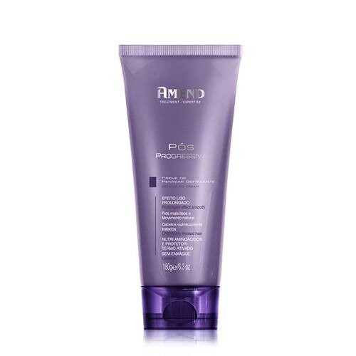 O Creme de Pentear Defrizante Pós Progressiva Amend foi desenvolvido para criar uma proteção termo ativado que minimiza os danos provocados pelo calor do secador ou chapinha, além de facilitar durante a escovação, condiciona os fios, desembaraçando-os e deixando-os macios e fáceis de pentear.