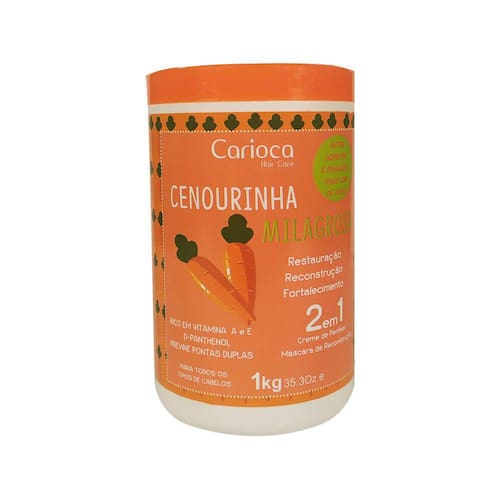 A cenoura é um excelente produto natural para cuidar do cabelo por conter boas quantidades de vitamina A, vitamina E e betacarotenos, que são nutrientes essenciais para manter os fios fortes, saudáveis , bonitos e evitar pontas duplas. Além de proteger os cabelos dos danos dos raios solares, poluição e vento, fortalece os fios tornando-os mais resistentes. Cabelos mais saudáveis com brilho e macios.