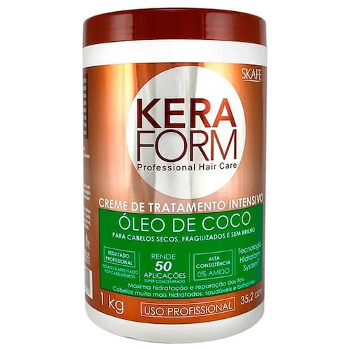 O Creme De Tratamento Intensivo Keraform Skafe Oleo De Coco foi é ideal para proporcionar uma hidratação profunda nos fios, mantendo-os fortes e saudáveis, sua fórmula rica em óleo de coco, age diretamente no interior da fribra capilar, reparando os danos e repondo os nutrientes necessários para manter fios com balanço e cheios de vida.