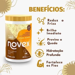 O poder da água de arroz se une à tecnologia Novex para oferecer nutrição intensa, suavidade ao toque e cabelos mais alinhados, sedosos e visivelmente saudáveis desde a primeira aplicação. Ideal para todos os tipos de cabelo!