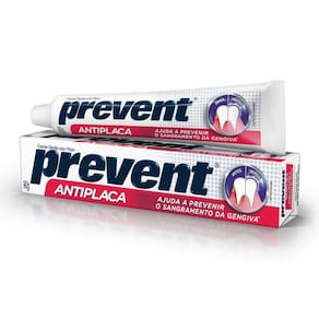 Creme Dental Prevent Antiplaca tem ação antibacteriana, que proporciona proteção e higiene aos dentes contém triclosan e citrato de zinco com ingredientes ativos no combate á placa bacteriana, responsável pela inflamação e sangramento nas gengivas contém flúor, que protege contra as cáries deixando na boca uma sensação de frescor e limpeza.