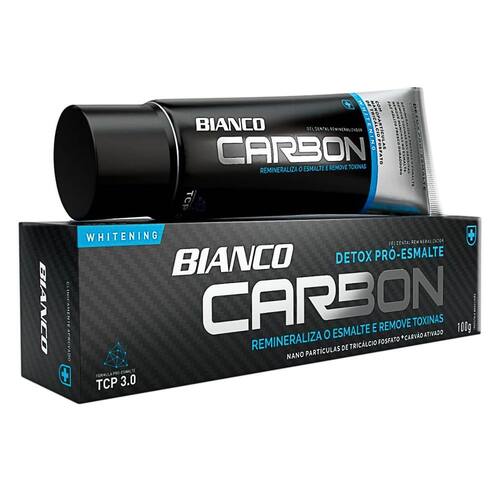 CREME DENTAL BIANCO CARBON DETOX PRÓ-ESMALTE COM CARVÃO ATIVADO Bianco Carbon traz o poder reparador do Tricálcio Fosfato (TCP) e a ação detox do carvão ativado numa fórmula inovadora. O carvão ativ