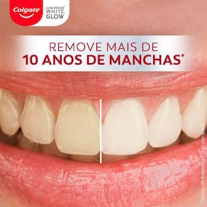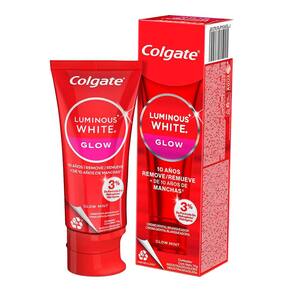 Creme Dental Colgate Luminous White Glow Clareador 70g promove um clareamento eficaz dos dentes, removendo manchas superficiais desde a primeira escovação, possui micropartículas branqueadoras e tecnologia de ação oxigenada, ajudando a restaurar o branco natural do sorriso enquanto protege o esmalte dental.