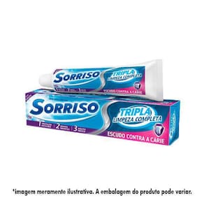 Creme dental sorriso tripla limpeza completa A força de um sorriso, agora com listras de proteção Sua fórmula refrescante desenvolvida para toda a sua família com listras de proteção, proporciona limpeza completa, além de ajudar a deixar os dentes fortes e protegidos. Sorriso tripla limpeza completa oferece: - proteção anticárie; - dentes brancos; - hálito fresco. Modo de usar: escove seus dentes adequadamente após cada refeição, três vezes ao dia ou segundo a recomendação de seu dentista. Enxágue completamente depois da escovação. Kit com 12 unidade Marca: Não Informado
