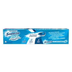 A FORÇA DE UM SORRISO, AGORA COM LISTRAS DE PROTEÇÃO Sua fórmula refrescante desenvolvida para toda a sua família com listras de proteção, proporciona limpeza completa, além de ajudar a deixar os dentes fortes e protegidos. Sorriso Tripla Limpeza Completa oferece: - Proteção anticárie; - Dentes brancos; - Hálito fresco.