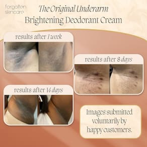 Forgotten Skincare O creme desodorante clareador autêntico para axilas escuras, eliminador de odores corporais para mulheres e homens, tratamento de cabelo encravado, vitamina C e ácido salicílico