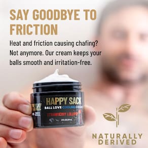 - Diga adeus aos pós irritantes e bagunçados. Graças ao creme refrescante Derm Dude Happy Sack Nut Love, você nunca terá que se preocupar com fricção, coceira e irritação. Nosso creme para bolas de rápida absorção e super resfriamento mantém suas bolas secas, sedosas e com um cheiro incrível.