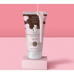 Creme Esfoliante Corporal Cuide-se Bem Deleite Chocolatudo 150ml Creme Esfoliante Corporal Cuide-se Bem Deleite Chocolatudo 150ml O Creme Esfoliante Cuide-se Bem Deleite Chocolatudo te convida a mergulhar na cremosidade do chocolate na sua rotina de cuidados com a pele, numa aventura indulgente e adocicada Este esfoliante com cheiro inspirado em chocolate vem em uma fragrância oriental gourmand e uma textura cremosa cor-de-rosa, para você aproveitar sua rotina do banho com toda a doçura que merece: -realiza uma esfoliação efetiva sem agredir a pele; -hidratação intensa; -pele macia e aveludada; Com 94% ingredientes de origem natural e embalagem com plástico vegetal, este esfoliante corporal Cuide-se Bem é um verdadeiro mimo para aqueles dias em que você só quer se sentir envolvido por doces momentos SOBRE DELEITE CHOCOLATUDO Nenhum produto O Boticário é testado em animais, ou seja, este item possui selo Cruelty Free. Produto vegano. Cálculo de ingredientes de origem natural baseado na ISO 16128. Marca: Não Informado