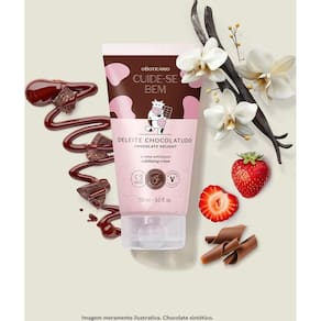 Creme Esfoliante Corporal Cuide-se Bem Deleite Chocolatudo 150ml Creme Esfoliante Corporal Cuide-se Bem Deleite Chocolatudo 150ml O Creme Esfoliante Cuide-se Bem Deleite Chocolatudo te convida a mergulhar na cremosidade do chocolate na sua rotina de cuidados com a pele, numa aventura indulgente e adocicada Este esfoliante com cheiro inspirado em chocolate vem em uma fragrância oriental gourmand e uma textura cremosa cor-de-rosa, para você aproveitar sua rotina do banho com toda a doçura que merece: -realiza uma esfoliação efetiva sem agredir a pele; -hidratação intensa; -pele macia e aveludada; Com 94% ingredientes de origem natural e embalagem com plástico vegetal, este esfoliante corporal Cuide-se Bem é um verdadeiro mimo para aqueles dias em que você só quer se sentir envolvido por doces momentos SOBRE DELEITE CHOCOLATUDO Nenhum produto O Boticário é testado em animais, ou seja, este item possui selo Cruelty Free. Produto vegano. Cálculo de ingredientes de origem natural baseado na ISO 16128. Marca: Não Informado