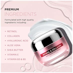Ingredientes Ativos Premium: Enriquecido com Retinol, que ajuda a uniformizar o tom da pele e clarear manchas escuras, e Colágeno, que diminui a aparência de linhas finas e traz vitalidade à sua pele.